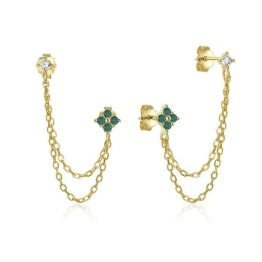Lenny Double CZ Chain Stud Earrings